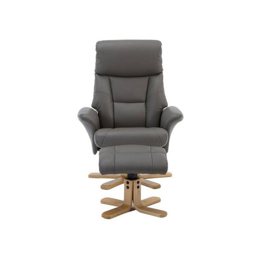 Teknik Office Montreal Recliner Grey PU with a swivel recline function, stylish natural wood five star base and matching footstool.Regular price £550.00Regular priceUnit price per£676.00Sale price £550.00Sale