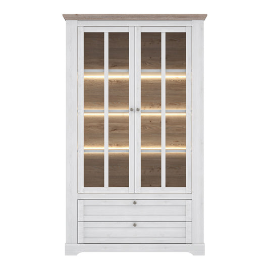 Furniture To Go Illoppa Display Cabinet in Snowy Oak/Oak Nelson with 6 Point Led