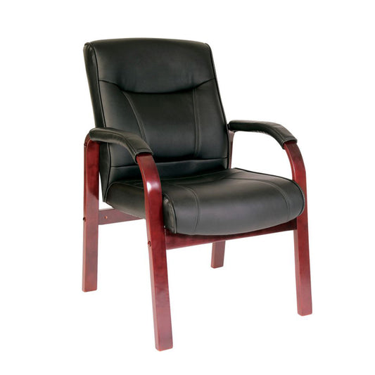 Teknik Office Kingston Black Visitor bonded leather chair with light Oak/Mahogany effect arm frame
