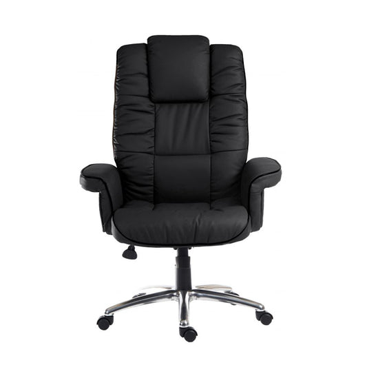 Teknik Office Lumbar Massage Black Faux Leather Executive Chair with Matching Capped Five Star Base.