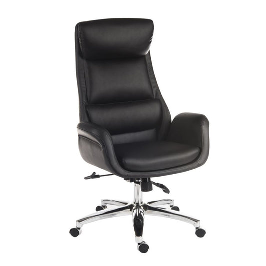 Teknik Office Newport Black Leather Faced Cushioned Armchair with Wooden Feet