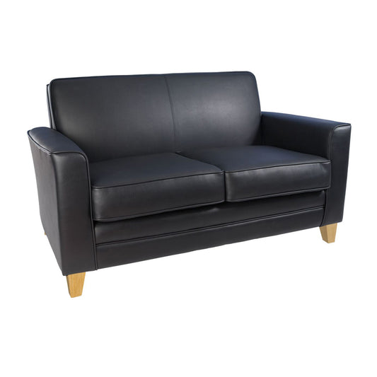 Teknik Office Newport Black Leather Faced 2 Seater Sofa with Smart Wood Feet