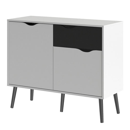 Furniture To Go Oslo Sideboard Small 1 Drawer 2 Doors in White and Black Matt
