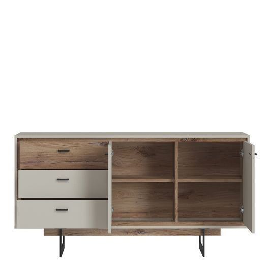 Furniture To Go Rivero 3 Door 3 Drawer Wide Sideboard in Grey and Oak