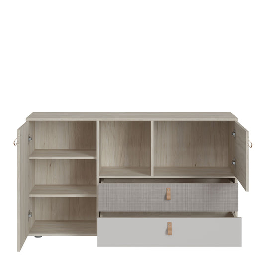 Furniture To Go Denim 2 Door 2 Drawer Sideboard in Light Walnut, Grey Fabric Effect and Cashmere